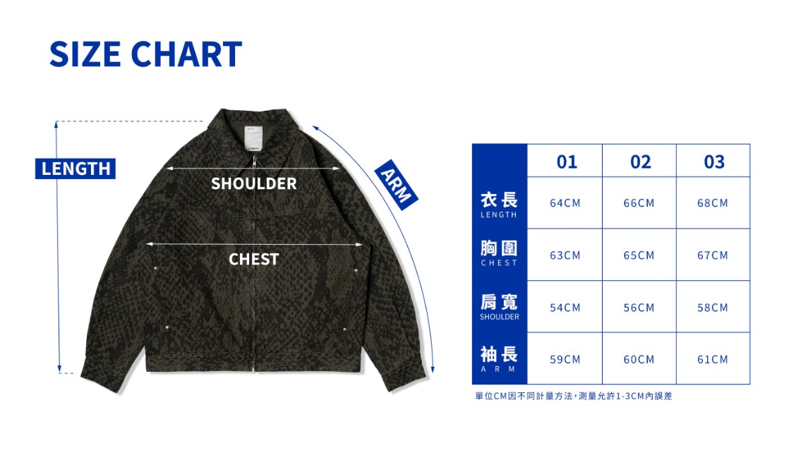 01:衣長64cm / 胸寬63cm /肩寬54cm/袖長59cm