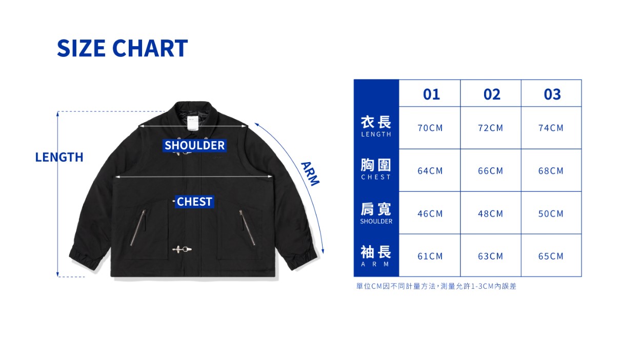 01:衣長70cm / 胸寬64cm / 肩寬46cm / 袖長61cm