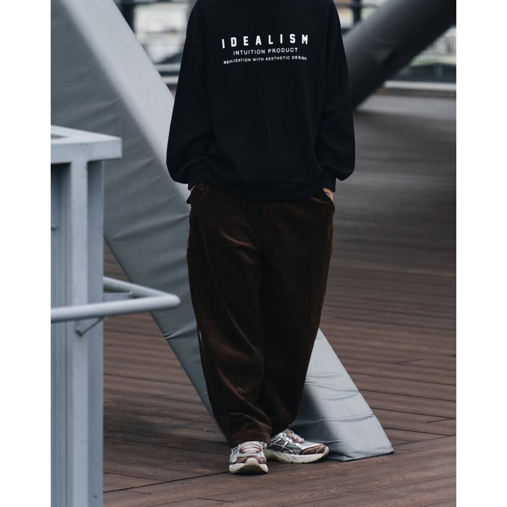以工匠褲輪廓為基礎,重新詮釋日常休閒的穿著樣貌,採用特殊泡泡紗燈芯絨,