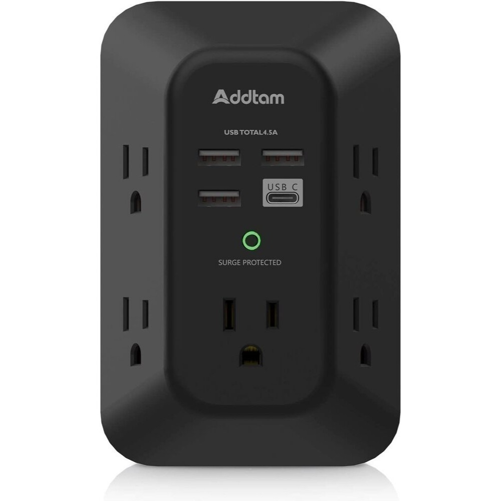 包含5個AC插座,4個USB充電器端口(包含一個USB- C端口),1800 焦耳電湧保護器通過改善電能質量來保護電子設備。插上即可使用 (對於某些插座,可以在使用前將白色塑料插腳剪掉。)