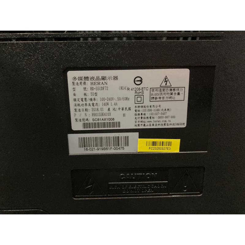 【拆機良品】禾聯 HD-55UDF72 零件/電源/主機板/邏輯板/多合一主板/腳架 *此為拆機良品,商品都有測試過 *確認電視型號及板子型號是否一樣 *建議具備專業維修人員購買 *店保固七日 *台中店面可看實機