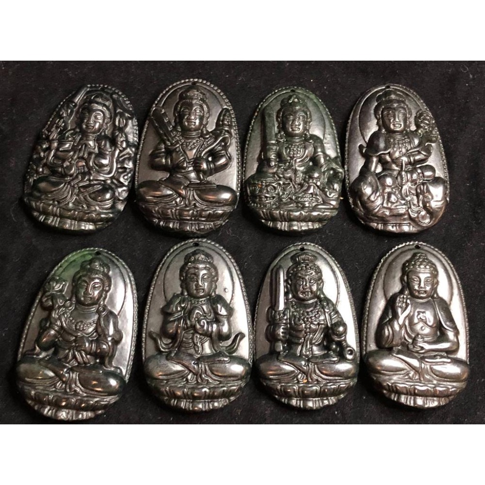 天然玉石活磁養生蛇紋石台灣墨玉十二生肖本命佛八大守護神玉佩墜子吊墜掛件藥王石文殊普賢