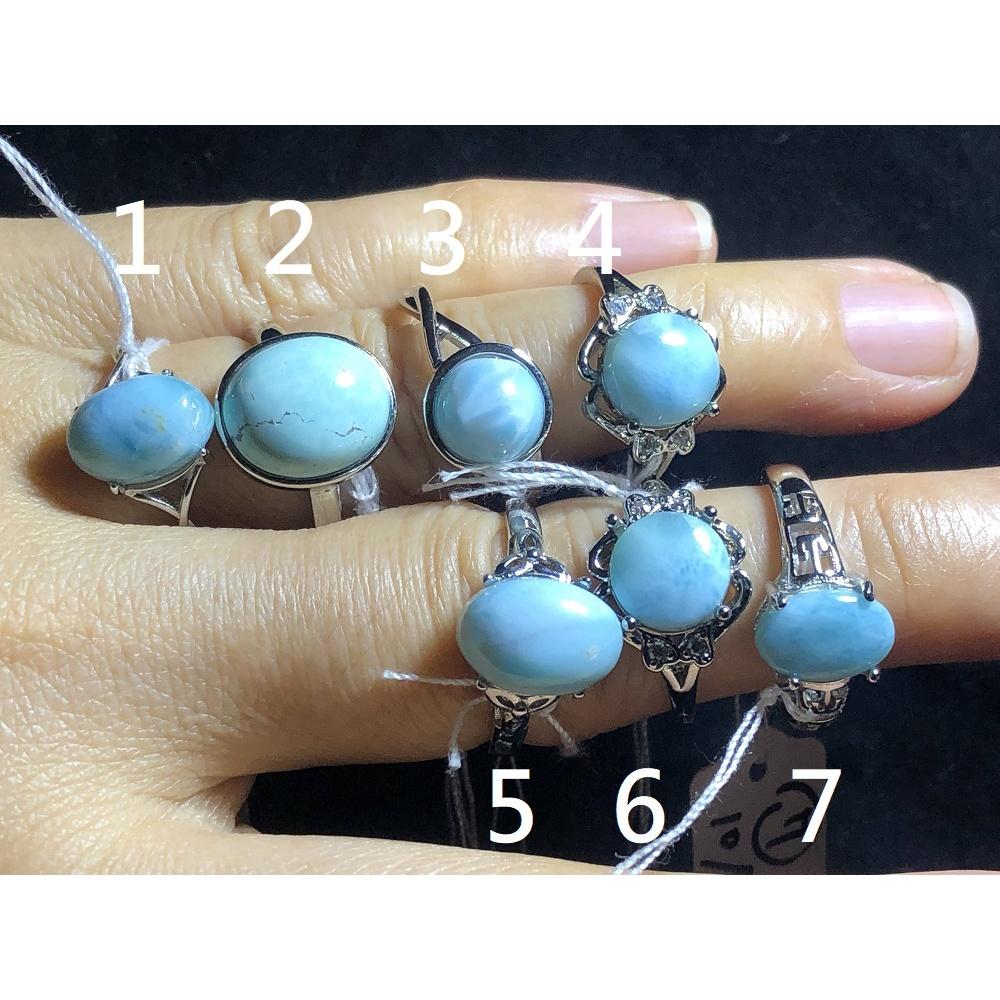天然海紋石拉利瑪戒指925銀戒指活圍可調珠寶寶石玉石首飾飾品