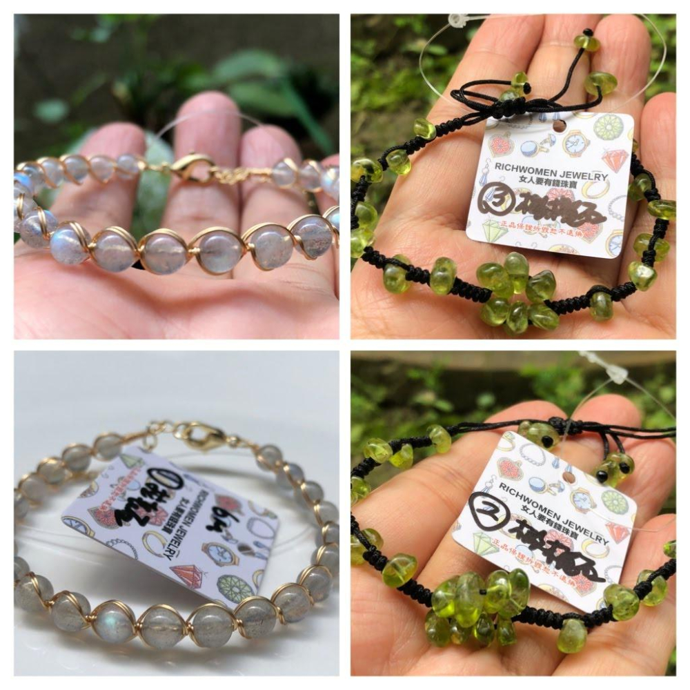 天然拉長石灰月光石橄欖石手編繩14k繞線手鍊手串手環手珠珠寶首飾飾品