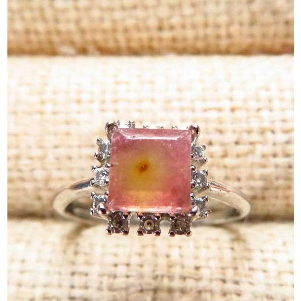 滿鑽包邊*黃心紅皮* 特色*收藏*極美AAA級10mm西瓜碧璽戒指活圍方型玉石珠寶首飾寶石