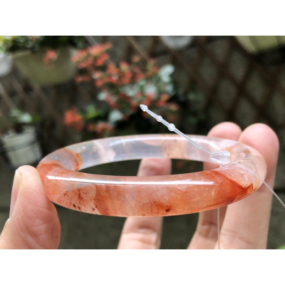 17.76圍美鐲滿絲透料天然紅水晶紅膠花手鐲鐲子玉鐲手環圓條圓骨鐲招財珠寶玉石首飾飾品