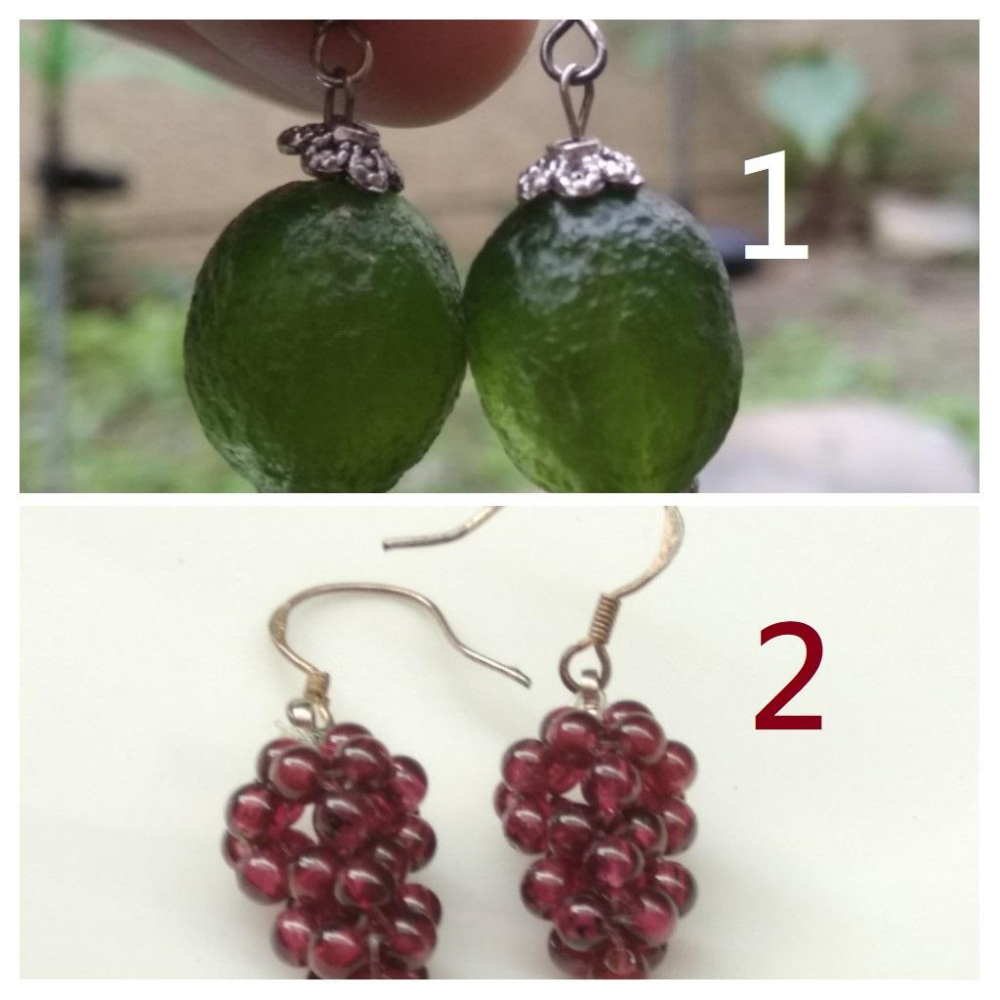 天然水晶紅石榴石葡萄多子多福氣/捷克隕石耳釘耳鈎耳針耳環耳飾珠寶寶石首飾飾品