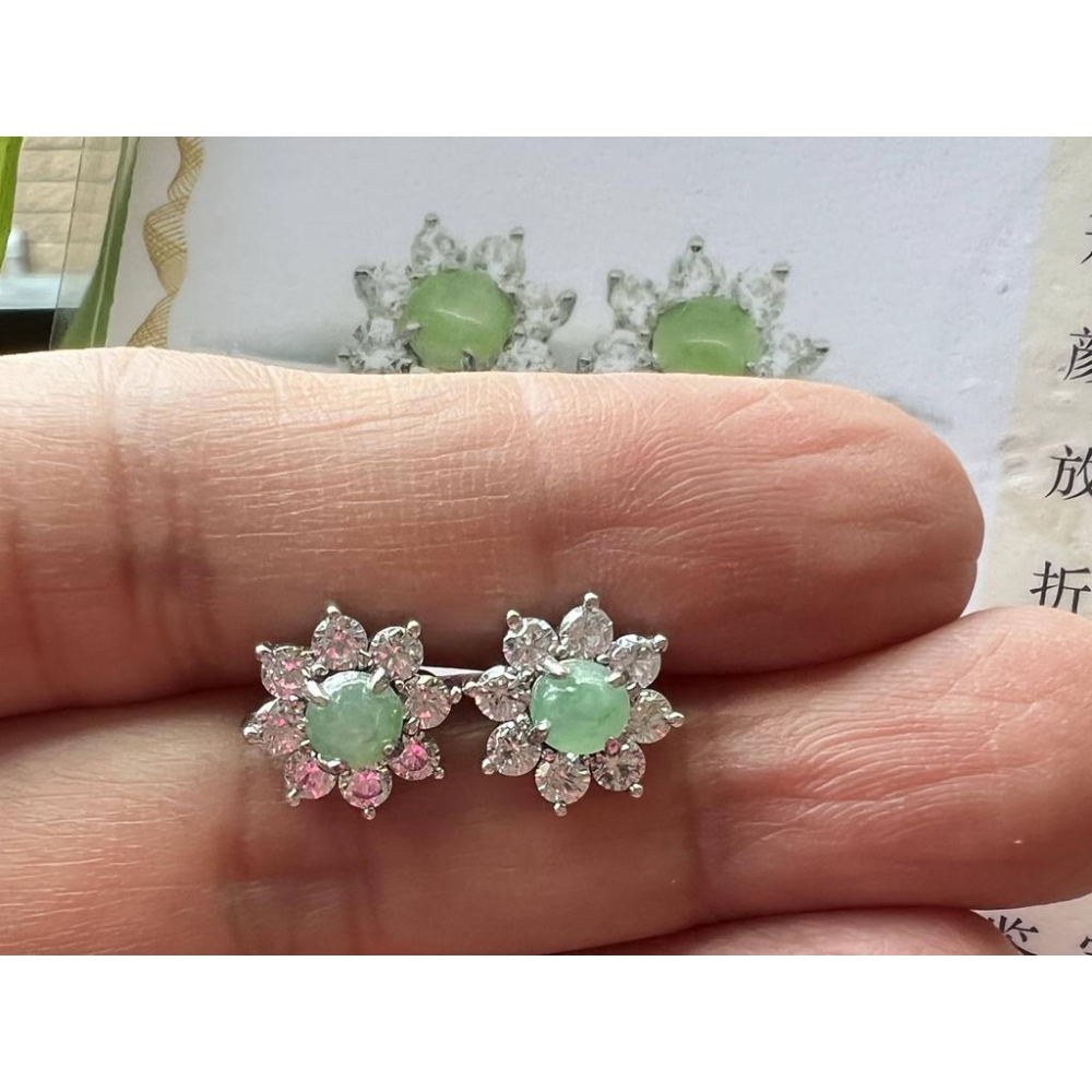 帶證書925銀天然A貨冰種冰綠翡翠耳釘耳環緬甸玉石女款耳飾珠寶寶石首飾飾品送禮盒