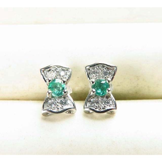 925銀鑲嵌全油綠不含黑點祖母綠耳釘領結款蝴蝶結耳鈎耳針耳環耳飾4mm珠寶寶石首飾飾品