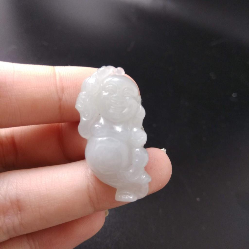 天然玉石緬甸玉硬玉翡翠財神彌勒佛佛公34.2*16.3*5.8mm吊墬墜子玉墬掛件玉珮項鍊珠寶寶石首飾飾品
