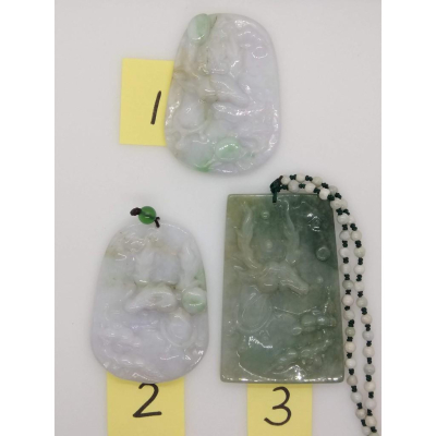 種頭老,種水好,底子清潤圓潤,水頭清亮, 精工雕琢,佩戴,上手彰顯富貴之氣, 是值得擁有,贈送親朋好友及珍藏的玉中珍品 1.尺寸56.2*40.6*7.8mm 2.尺寸56.2*40.7*8.8mm 3.尺寸65.2*42.5*9.4mm$1200 買前須知 (很重要的,請務心耐心閱讀) 1、本店的商品寶貝一律是在自然光下實拍,無任何的PS修飾處理,請您按照寶貝的尺寸畫草圖,以確 定實際尺寸。由於受自然光線的影響及顯示器的原因,實物難免與圖片存在色差,自然光拍攝的寶貝, 實物要比圖片漂亮很多喲! 2、您所拍下的鏈接中,顯示的圖片,以及商品描述指向的實物,即是我們要發給您的!(因為天氣光線 的不同,圖片或多或少的存在一點色差,拒絕色差的朋友請別拍)天然的產品難免存在石紋,商品是實 物拍攝,圖片原物發貨,圖片與實物難免有色差.天然石頭難免有雜色,棉,裂,礦缺,硬傷等,本店不保證 完美!追求完美的請繞行! 3、我店只出售天然A貨翡翠,是指沒有經過人工處理(注膠,染色等)的天然翡翠 ​​,A貨翡翠表面,內 部的紋理和棉是自然形成的,不屬於瑕疵範疇,有些產品受工藝的限制,玉器商品表面的拋光,邊緣的 打磨可能存在少許的粗糙、不平之處(不可避免的是翡翠本身的原因,不是加工工藝的問題)也不屬於 瑕疵的範疇,由於是天然產品,所以很難多時候無法達到完美無瑕的境地。請您在選擇產品的時候,對 您喜歡的產品寬容一些,我們只保證所售的商品物有所值,物超所值!請不要抱著一元錢買到價值一千 元的寶貝心理。 4、玉石,水晶,不可能像人造的玻璃那樣完美,天生的棉紋.冰裂.瑕點都是自然生成的.有句行話叫"玉無紋, 天無雲"喜歡天然的寶貝,就要接受它的瑕疵美,我們拍賣的寶貝也用多張的圖片盡可能的來展示寶貝的全 貌,所以除了重大的損傷, 我們不會對一般的瑕疵一一作出說明,所以請買家一定要看清圖片和商品介紹再 拍.如果您是追求完美的買家,請不要出價!如果出價表示對註明的要素不介意!