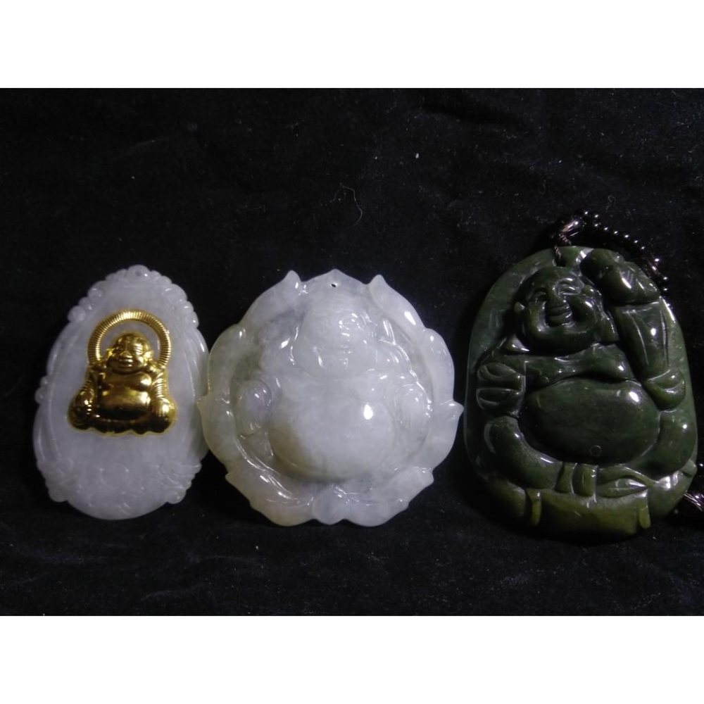 第2組天然A貨緬甸玉翡翠玉石冰黃翡金箔藍水彌勒佛財神爺佛公吊墜掛件墬子項鍊玉珮珠寶首飾寶石飾品