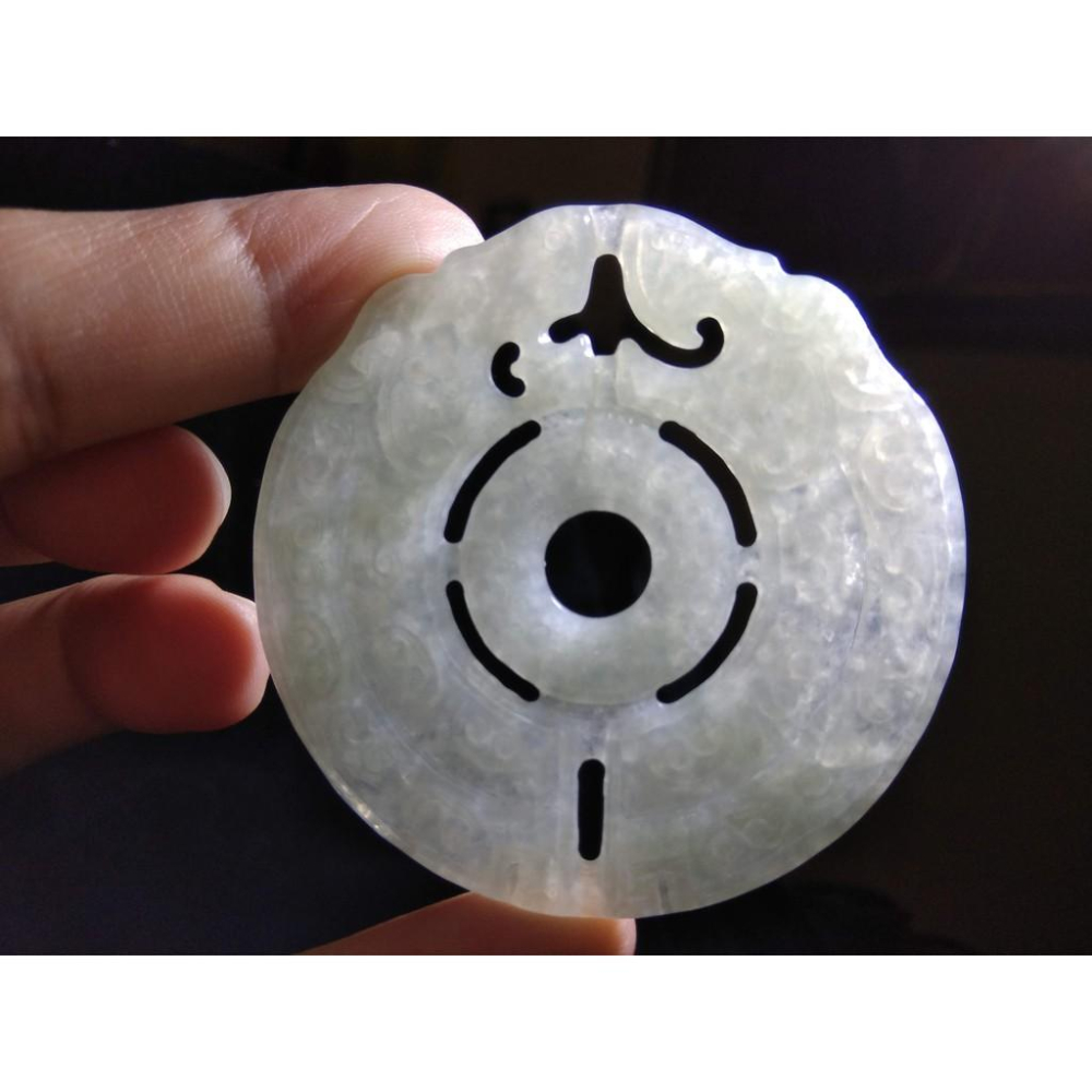 天然緬甸玉翡翠A貨鏤空冰種蘋果綠雙龍平安扣玉珮吊墜墜子玉墬掛件項鍊58*58.2*3.3mm珠寶寶石首飾飾品