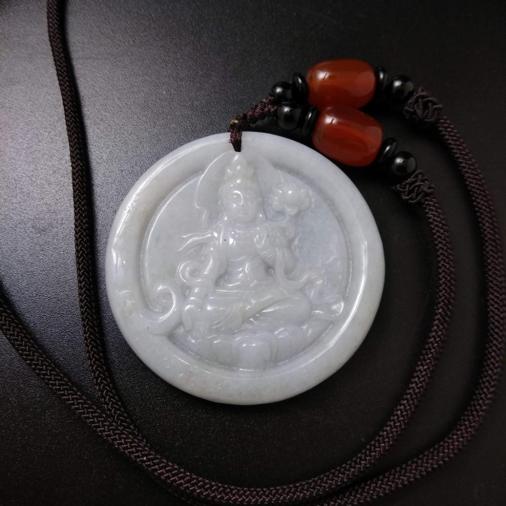 天然觀音玉石緬甸玉硬玉A貨翡翠精雕吊墬玉珮55*6.2mm墬子玉墬掛件觀音菩薩如來保佑平安珠寶
