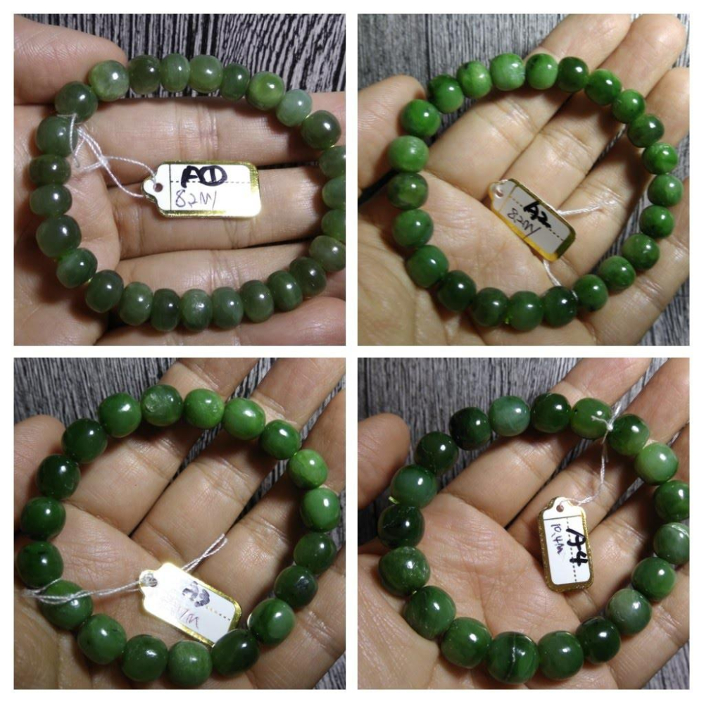 天然和闐玉和田玉軟玉滿綠碧玉手鍊手環手珠手串8.2-10.4mm珠寶首飾寶石飾品數款任選其一a組