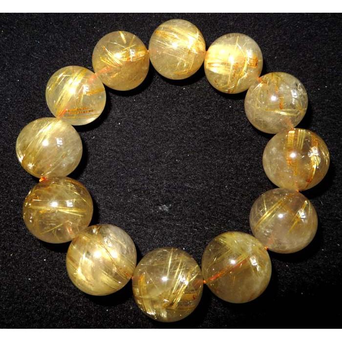 超大咪天然水晶貓眼鈦晶粗板絲金髮晶單圈圓珠手鍊手串手珠手環19mm/121.1g首飾飾品
