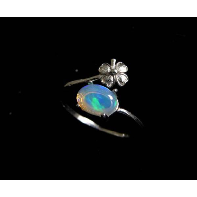 天然歐泊戒指五彩濱粉閃耀奪目靚麗淨全淨體可調節女戒珠寶寶石首飾飾品戒子活圍7*5mm