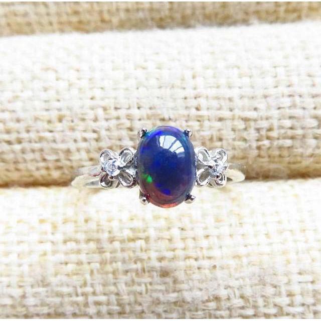 純天然蛋白石變彩晶體淨全淨體可調節女戒火彩好印度尼泊爾黑澳寶歐泊AAA級8mm藍歐泊戒指珠寶寶石首飾飾品蛋白石戒子活圍