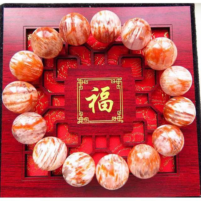 異象水晶天然水晶絕美罕見雪花幽靈*老礦料無加色*桔紅色*雪霜手鍊手鍊手串手鏈手珠佛珠13.5mm/60g珠寶玉石首飾飾品