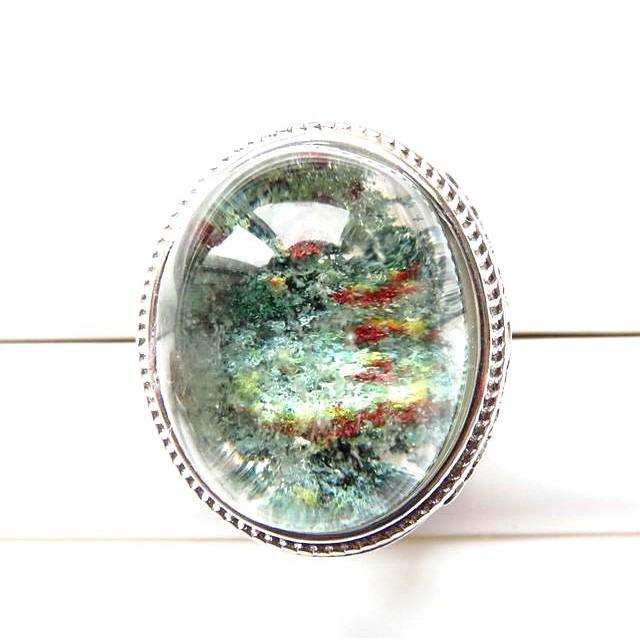 大戒面蛋面綠幽靈高檔戒指活圍活口男戒晶體超透超美彩色花幽靈珠寶玉石寶石首飾玉墬飾品20mm