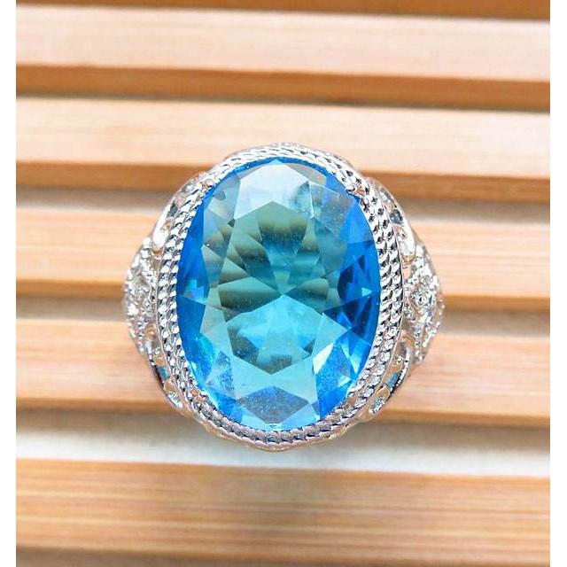 天然瑞士藍超閃亮超好切工托帕石拓帕石戒指Topaz戒子16mm活圍珠寶首飾彩色寶石首飾飾品