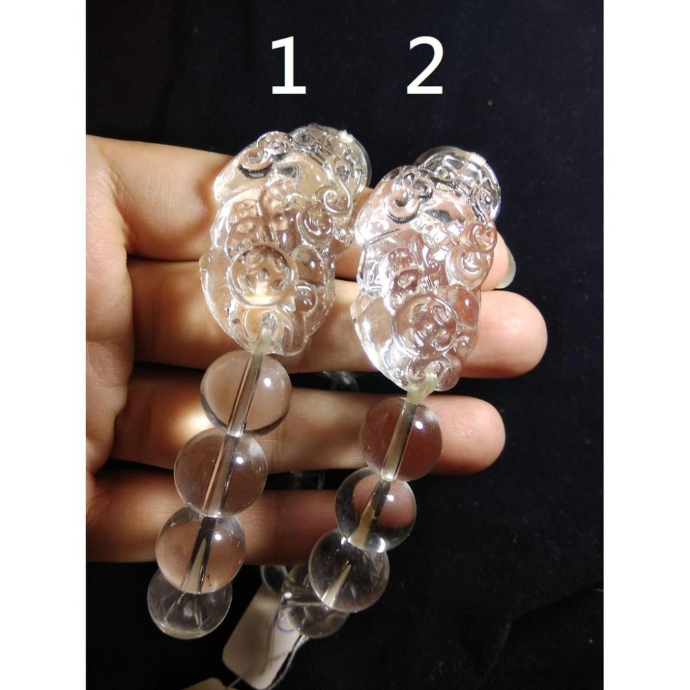冰透白水晶雕刻貔貅圓珠單圈手鍊手珠佛珠手環手串14mm招財旺財神獸珠寶首飾飾品寶石兩款任選其一