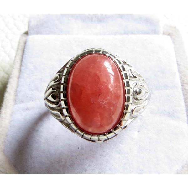冰透紅紋石蛋面戒指男女戒925銀台阿根廷寶石14*10mm桃花開運正品活圍活口內徑可調整正品珠寶玉石首飾飾品