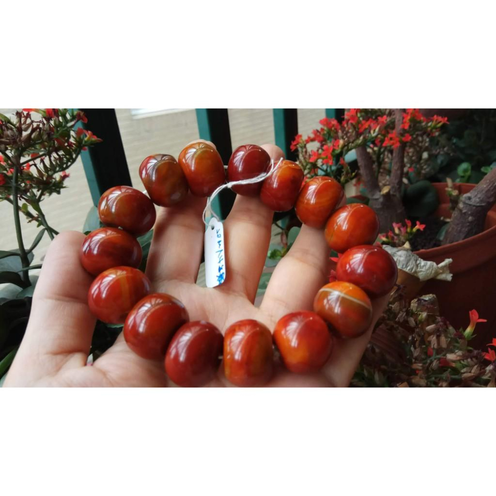 超美天然南紅瑪瑙北漂老料戰國紅扁圓珠單圈手鍊手串手珠佛珠手鏈大珠子20mm/66.1g珠寶玉石寶石首飾飾品