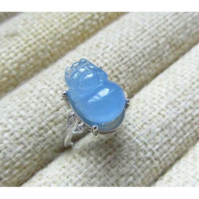 冰透珍藏款*世界珍貴種*極美12mm海藍寶雕刻貔貅戒指戒子活圍活口招財旺財神獸珠寶首飾彩色寶石首飾飾品寶石彩寶
