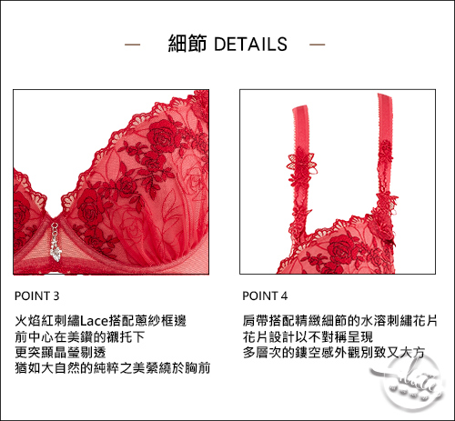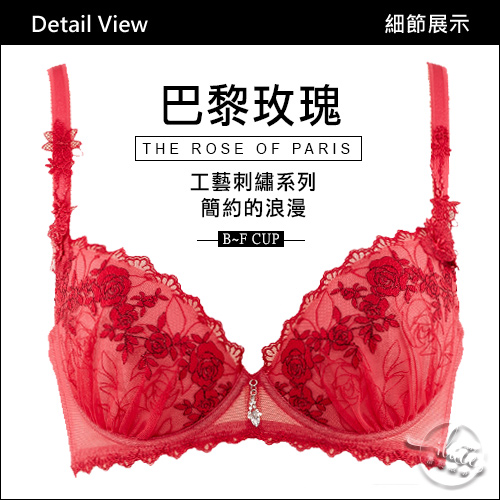 LADY 巴黎玫瑰系列 刺繡深線內衣 B-F罩 ( 火焰紅 )