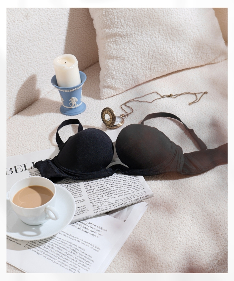 Lady 慵懶時光系列 素面無痕深線W鋼圈內衣 C-E罩(隨性黑)