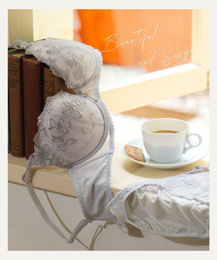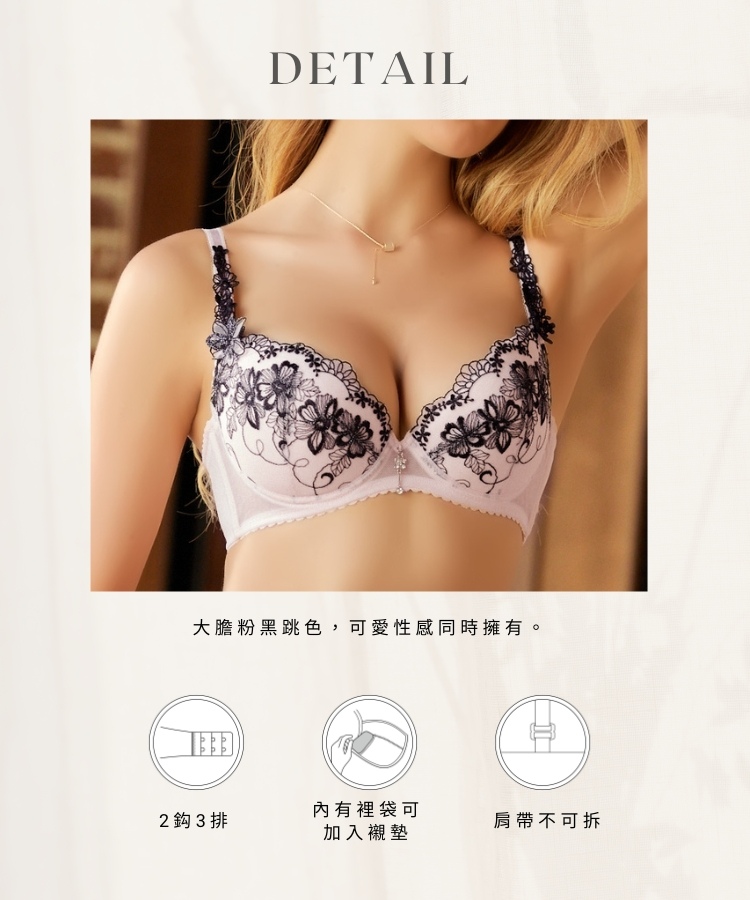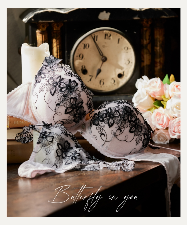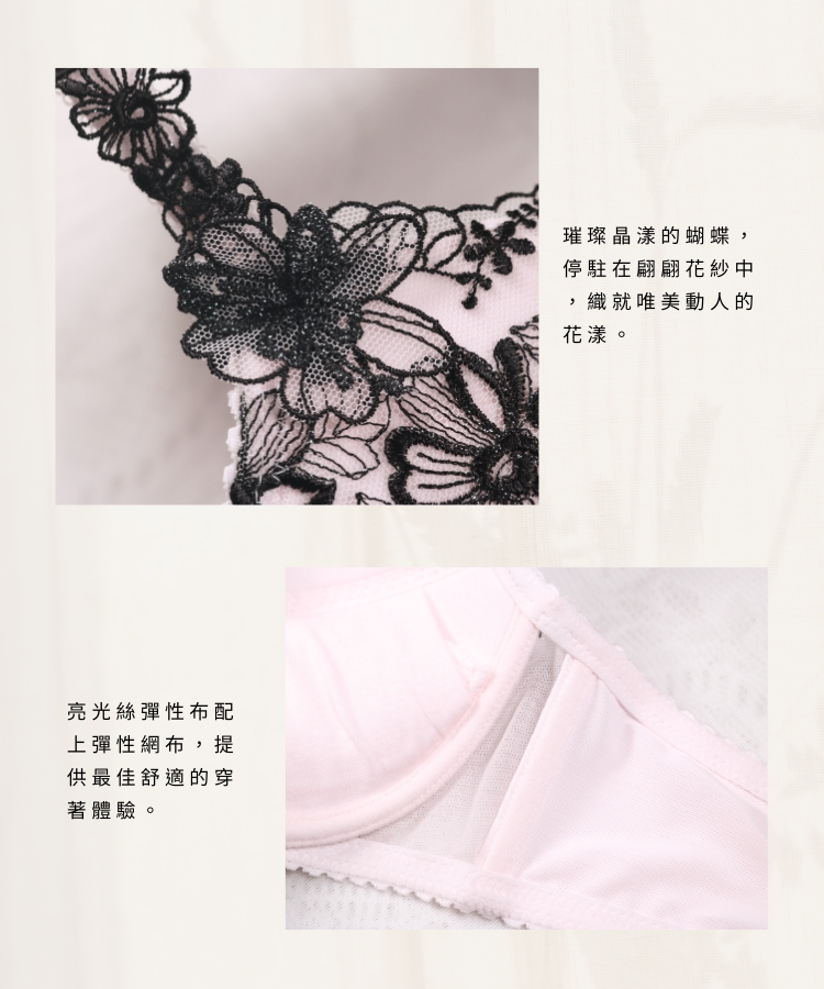 Lady 蝶舞輕揚系列 刺繡深線內衣 B-F罩(蝶羽灰/夢幻粉)