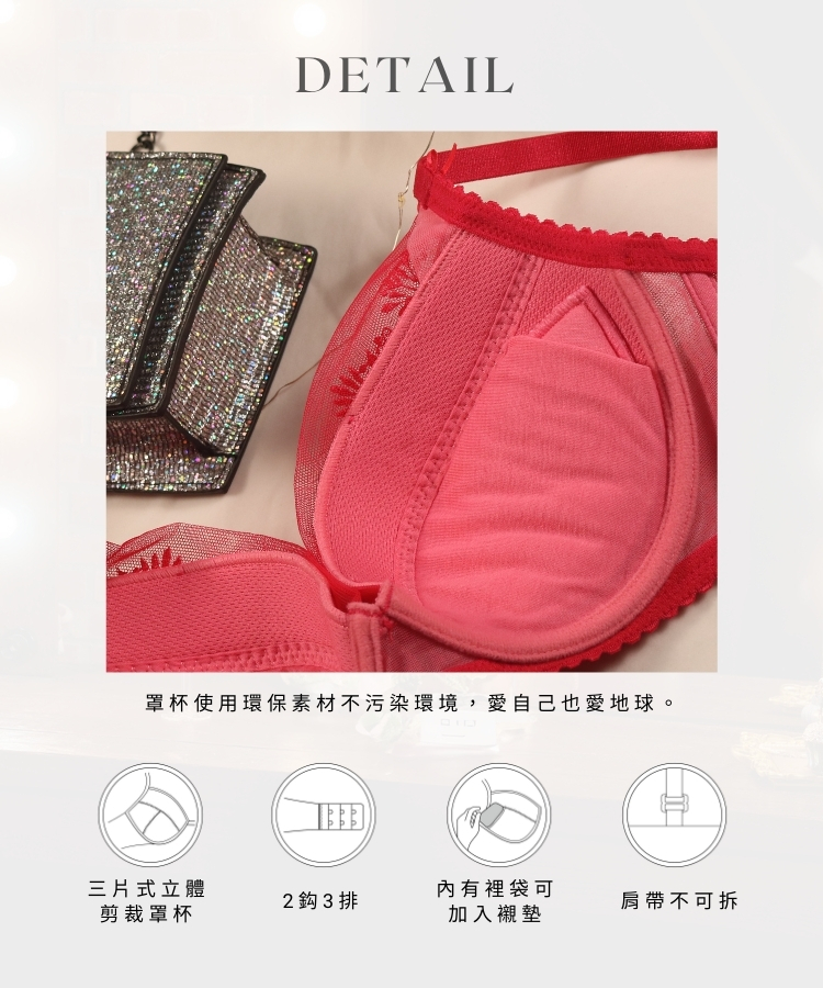 Lady 晨光似戀系列 刺繡深線內衣 B-F罩(熱戀紅/暗戀白)
