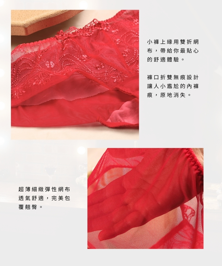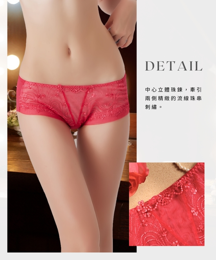 Lady 晨光似戀系列 刺繡低腰平口褲 M-XL(熱戀紅/暗戀白)