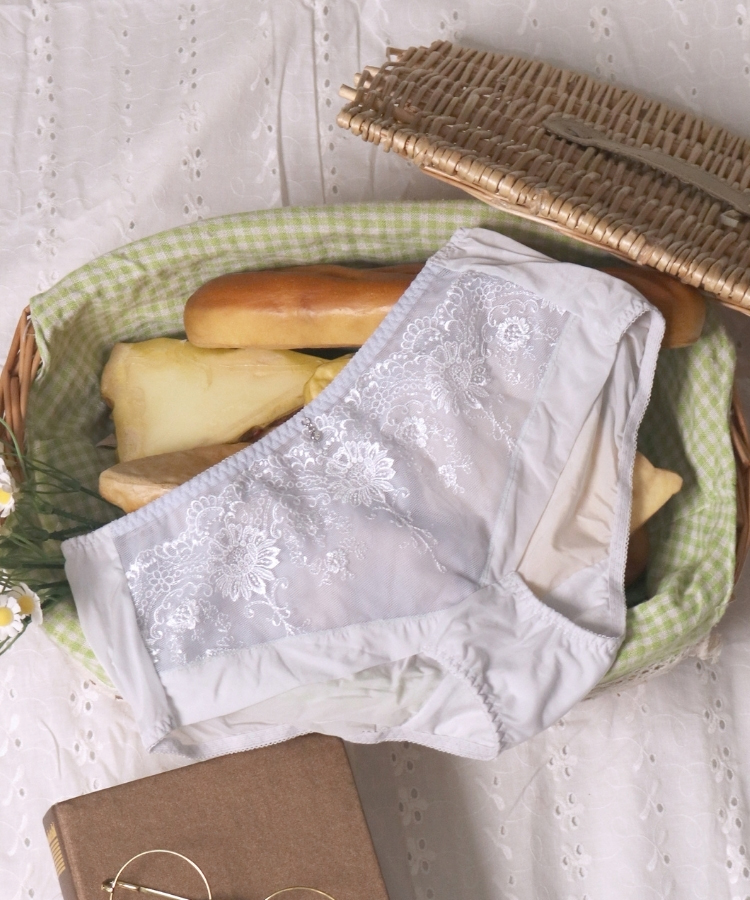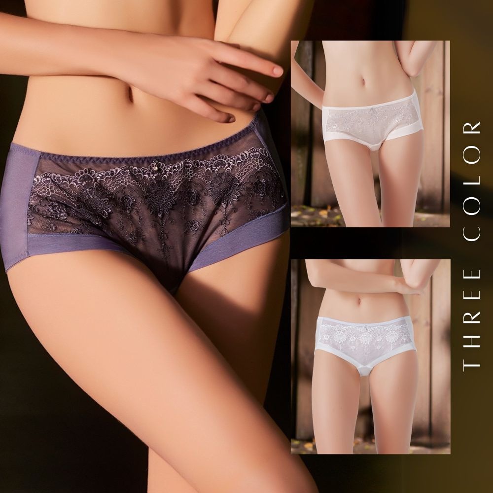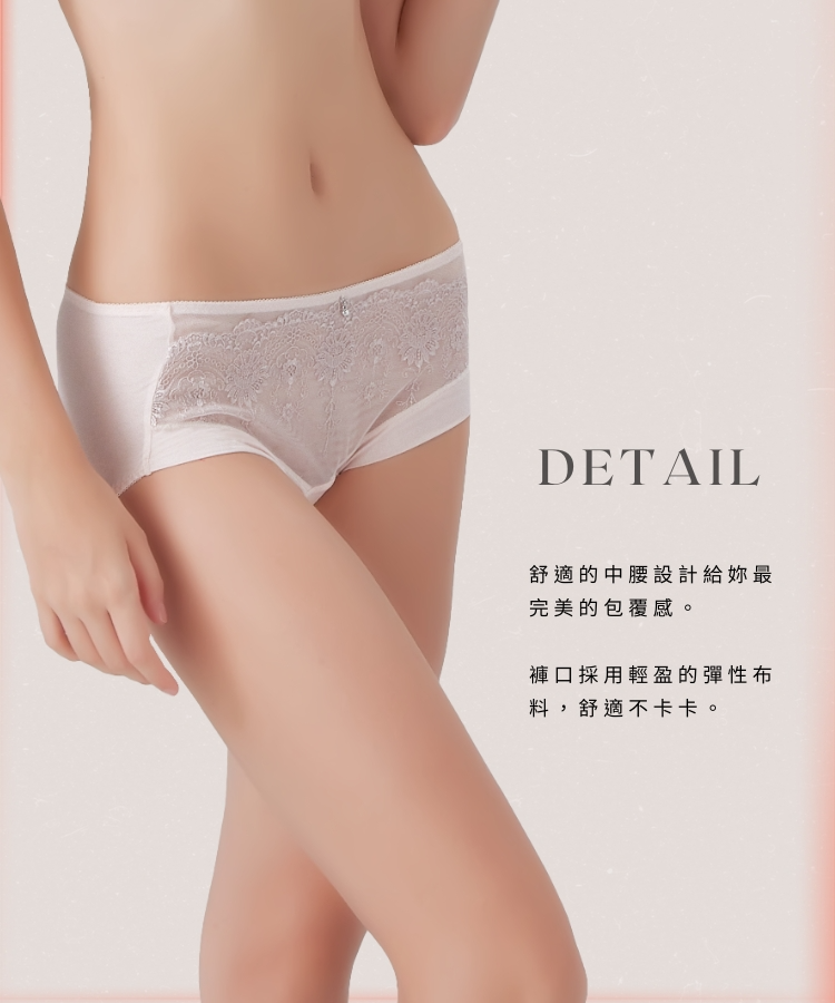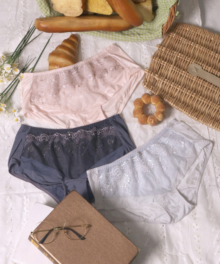 Lady 豔陽花語系列 刺繡中腰平口褲 M-XL(優雅膚/玥光灰/靜謐紫)