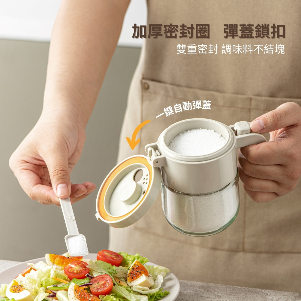• 一鍵自動彈蓋 雙重密封 調味料不結塊