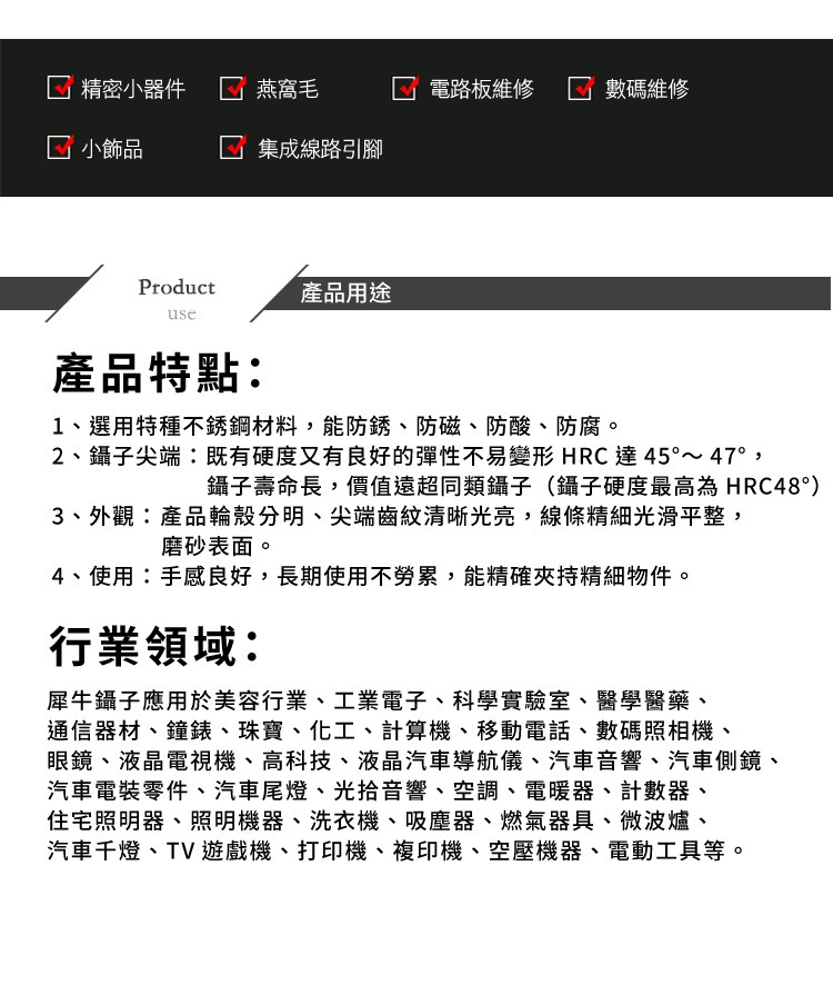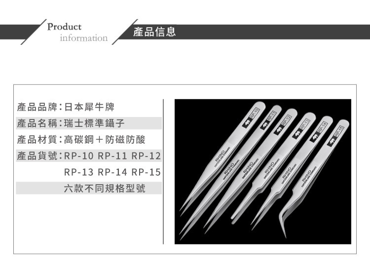 犀牛牌 RP-Series 瑞士等級加硬防磁鑷子