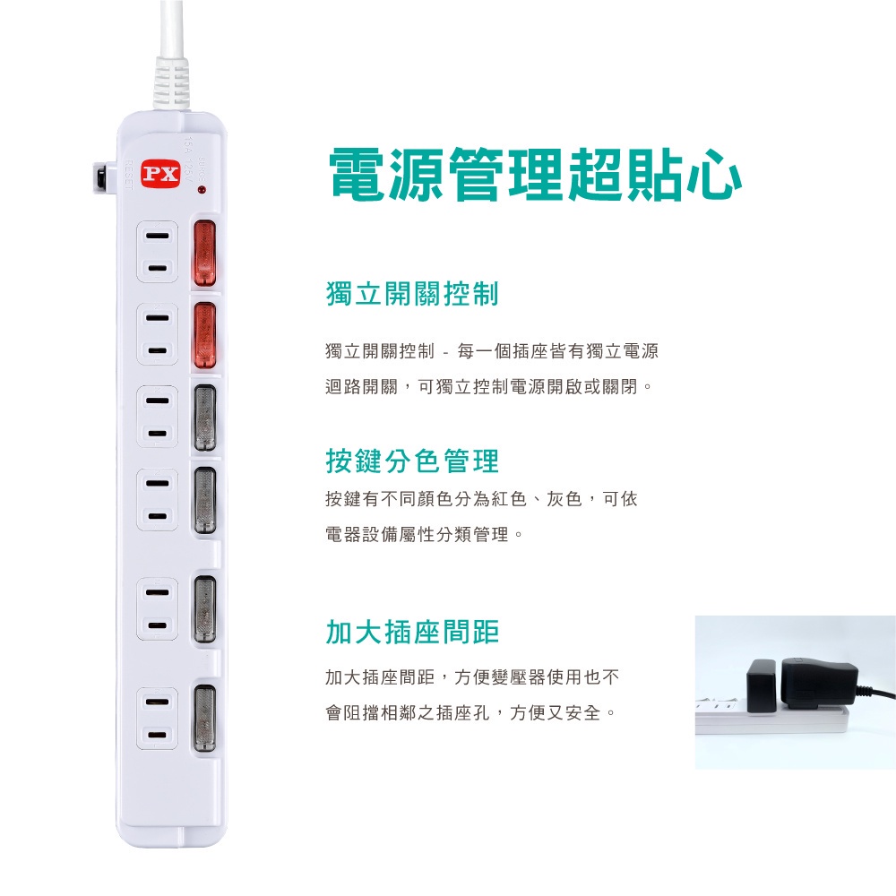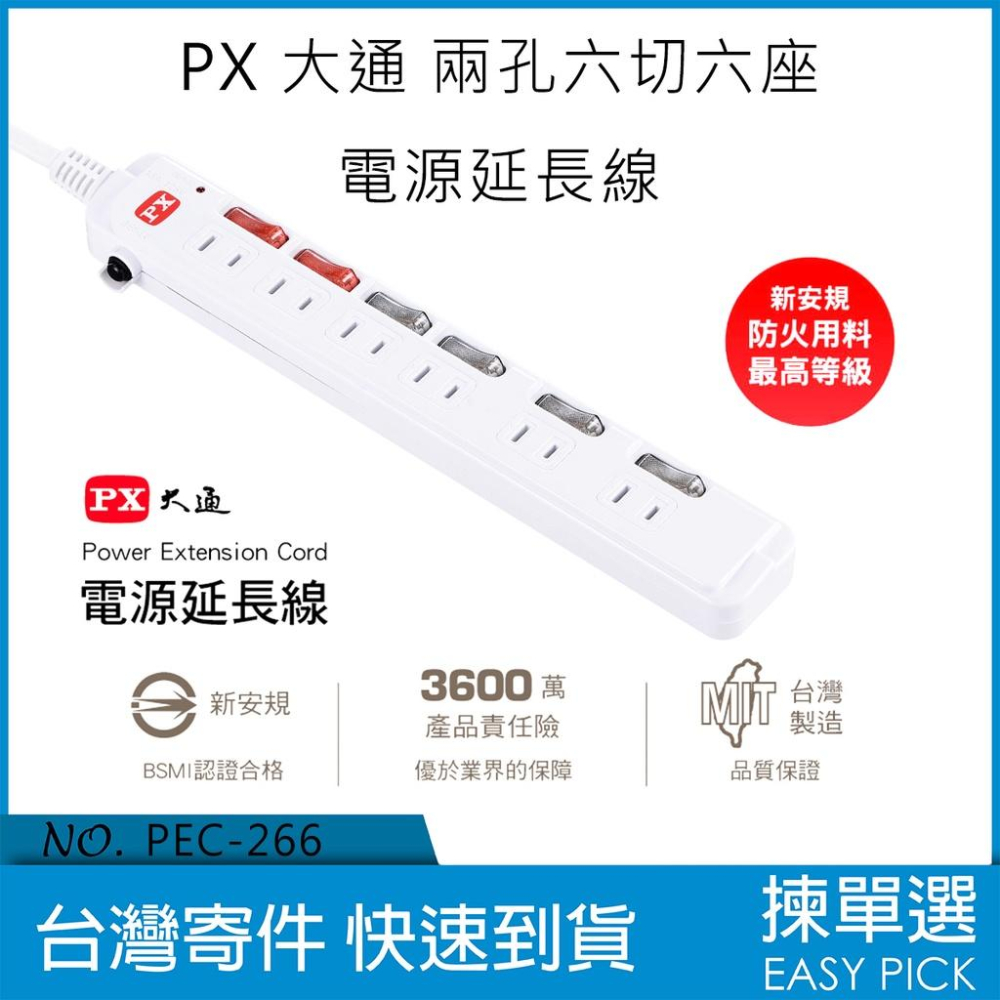 台灣製造 大通 PX 六切六座 電源延長線 兩孔 延長線 單獨開關 過載保護 PEC-2666 PEC-2669