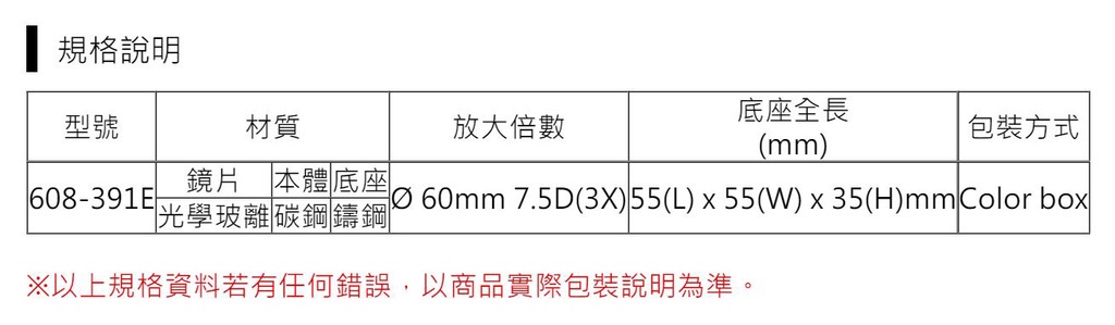 配合6D(2.5x)光學玻璃放大鏡,可用於SMD電路。