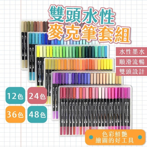 有12色到48色的套組,每隻色筆也都是雙頭的設計, 一邊軟筆頭、一邊針管筆頭