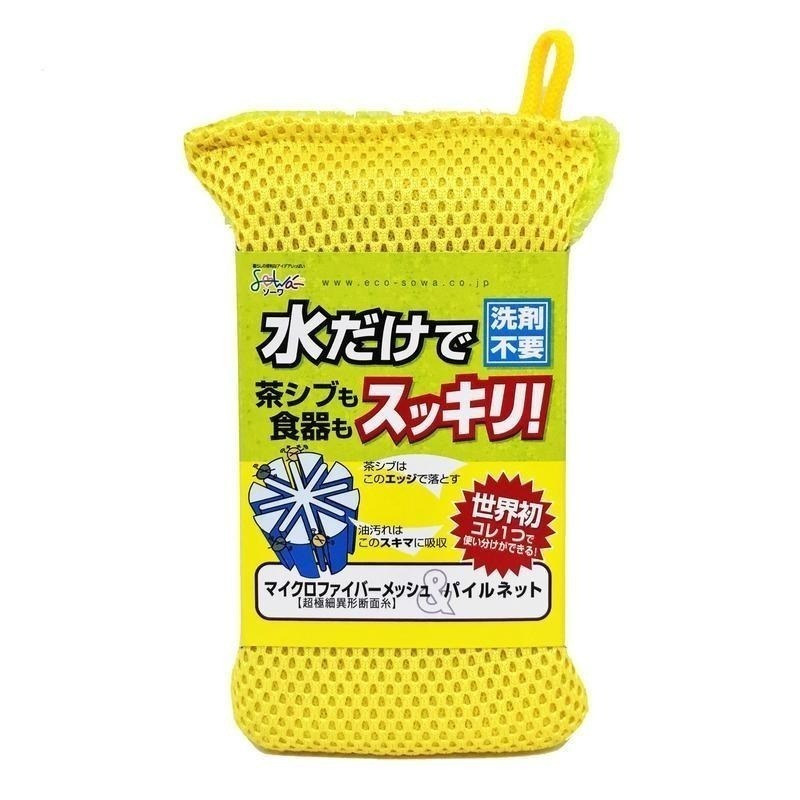 非常推薦微纖維(細網黃色方面)和拉毛織物網狀物(粗網綠色方面)做成一個海綿,