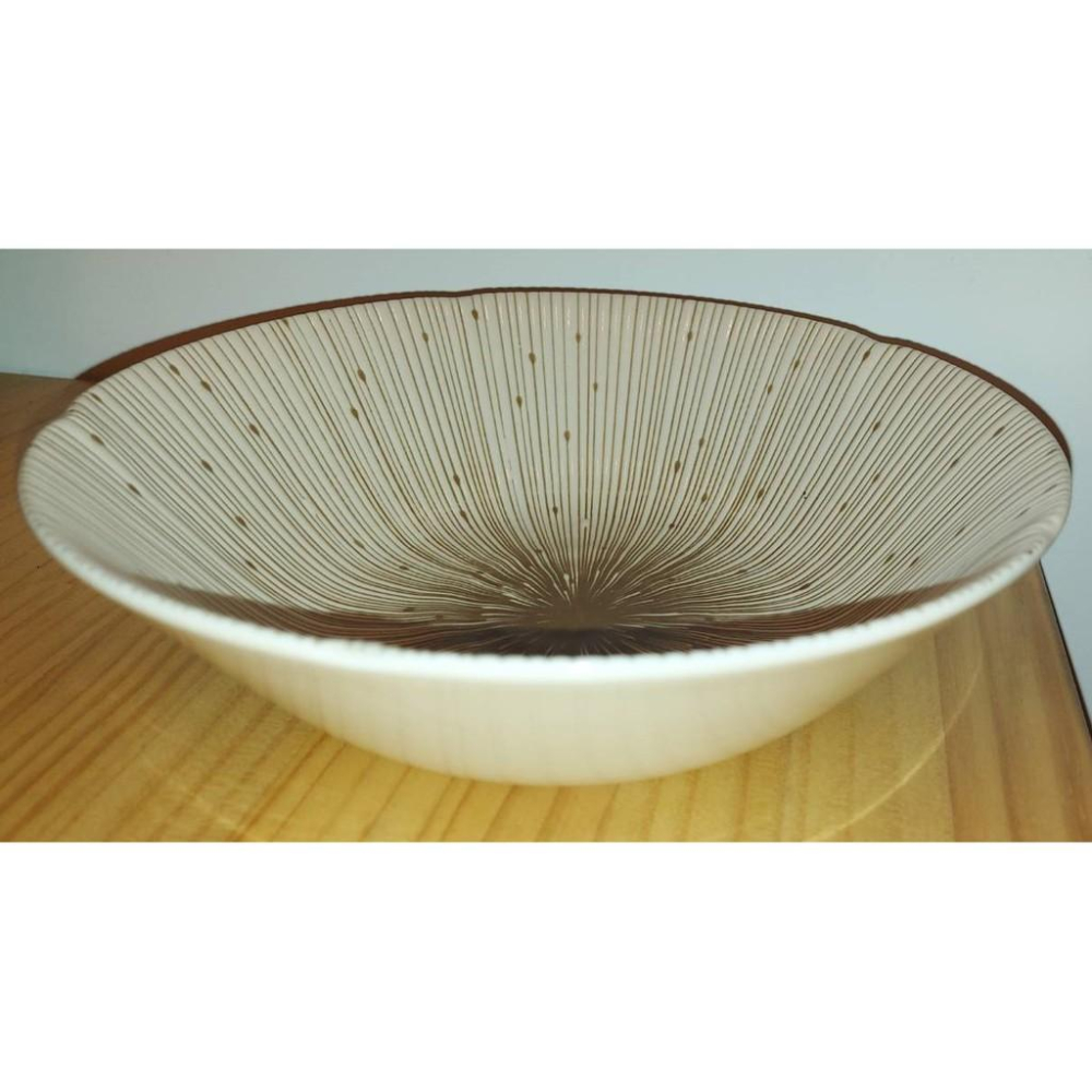 ~* 平安喜樂 *~日本製 美濃燒珠露 千段十草 湯碗 麵碗 花型 米色
