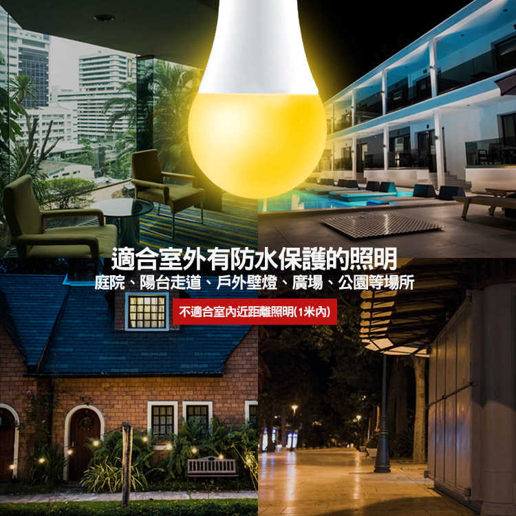 ◆不適合室內近距離照明(1米內),適合室外有防水保護的照明:庭院、陽台走道、戶外壁燈、廣場、公園等場所。