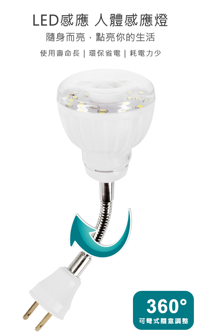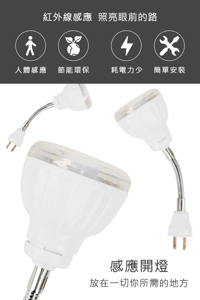 23LED感應燈人體感應燈(2P插頭彎管式)2入【MC0214】(SC0025)