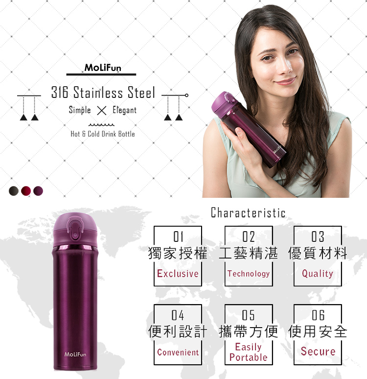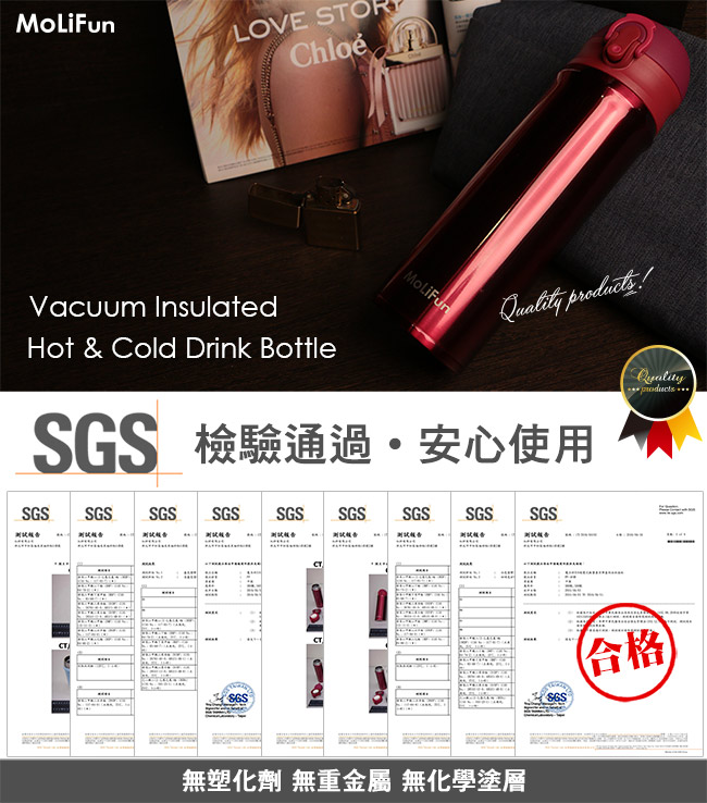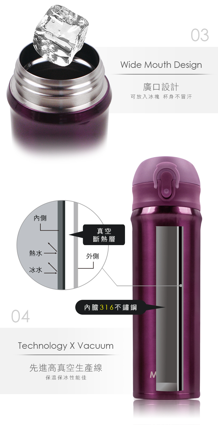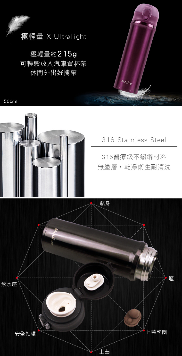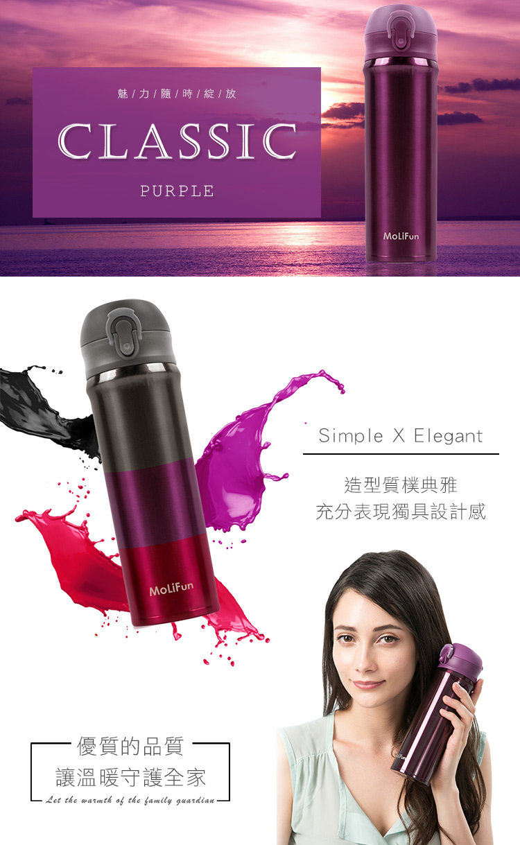 MoliFun魔力坊 316旋壓式輕量真空彈蓋杯保冰保溫杯500ml-水晶紫