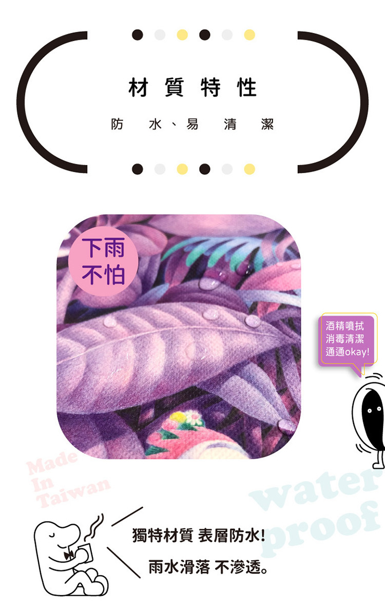 防水、耐用、易清潔 ( 沾水擦拭即可 )