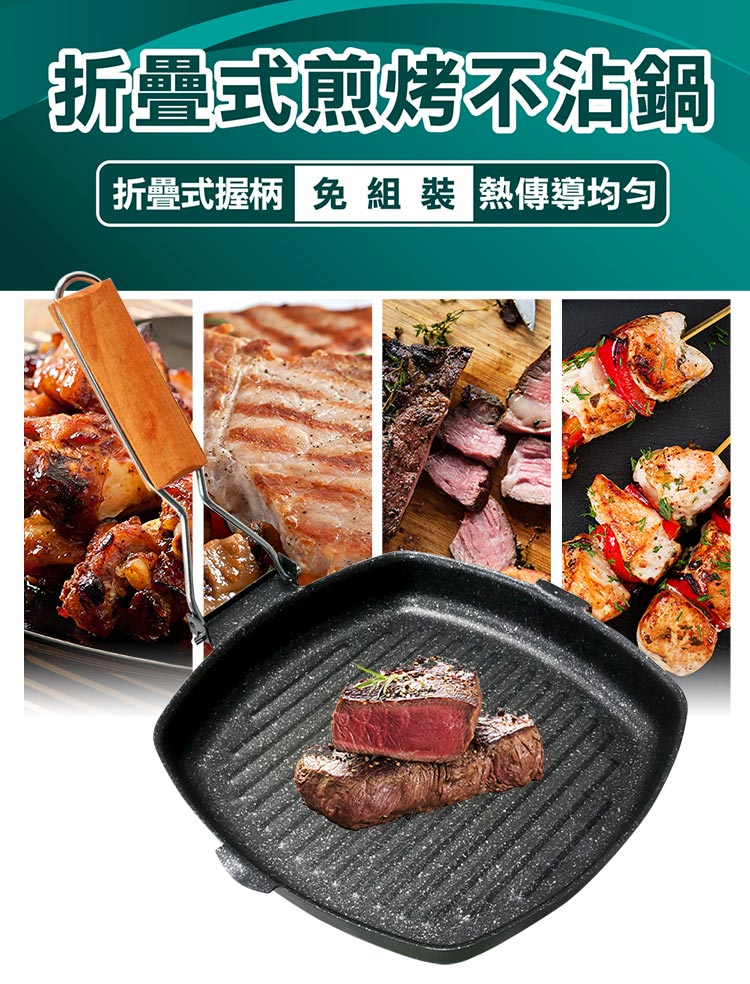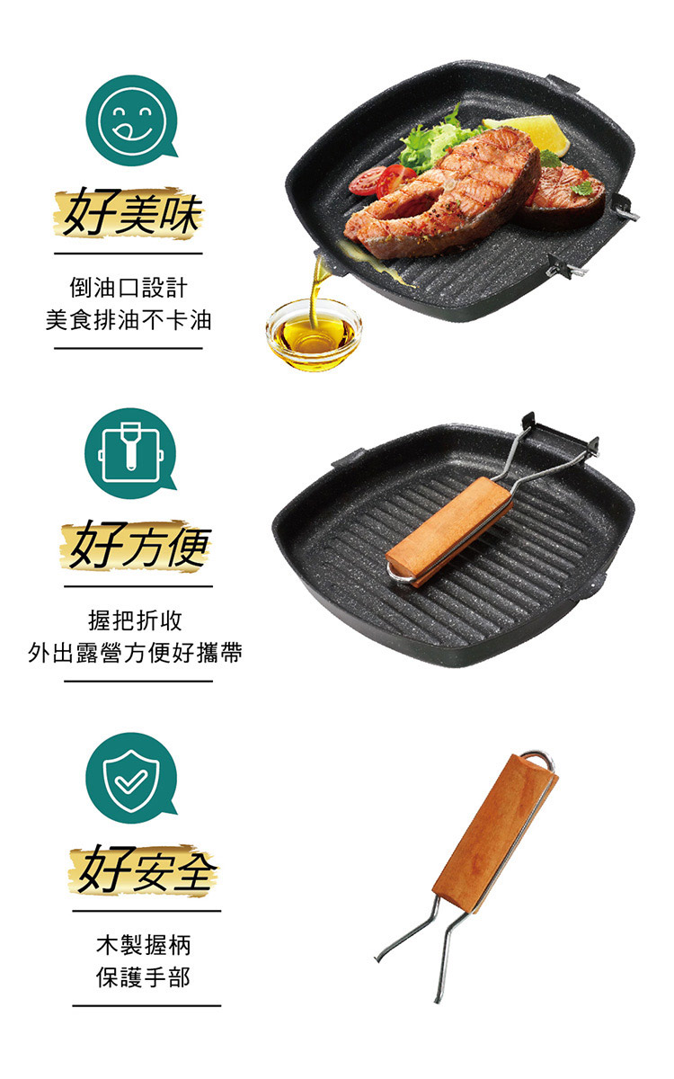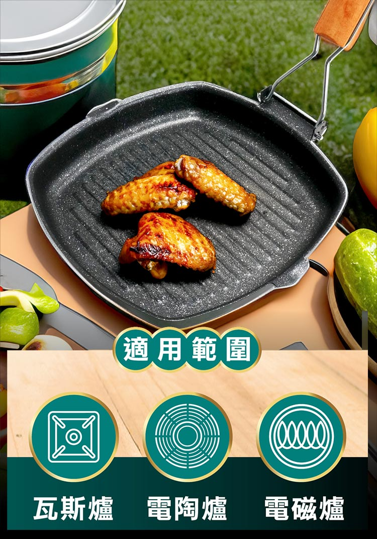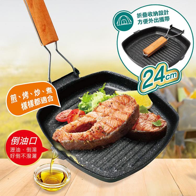 點秋香 折疊式把手煎烤不沾鍋(中秋烤肉/可拆手把/倒油口設計)
