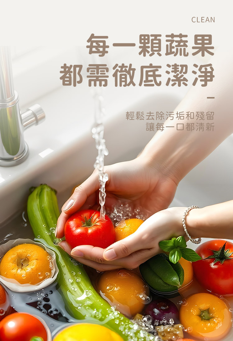 2、將蔬果直接浸泡酵素清潔洗劑中。