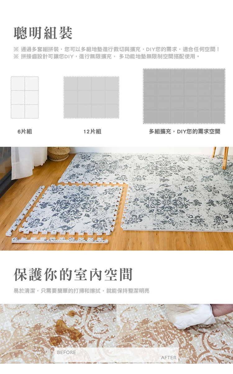 ※ 通過多套組拼裝,您可以多組地墊進行裁切與擴充,DIY您的需求,適合任何空間!