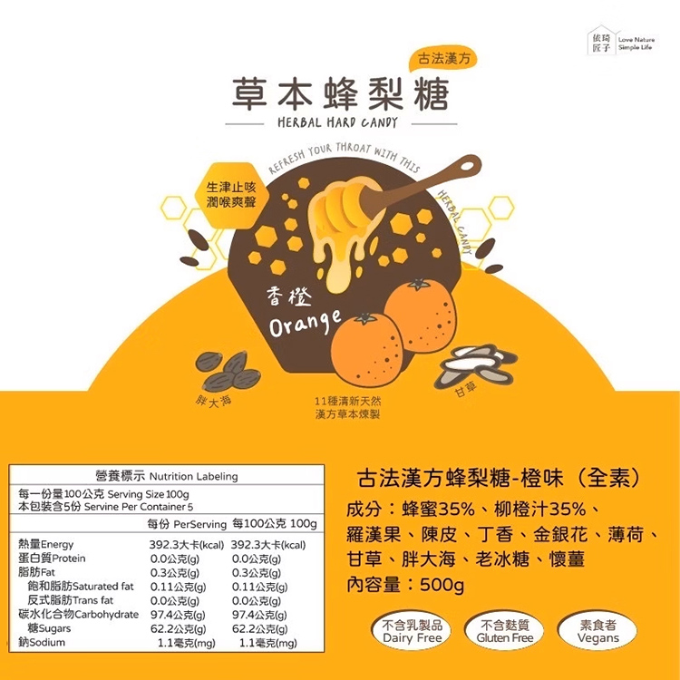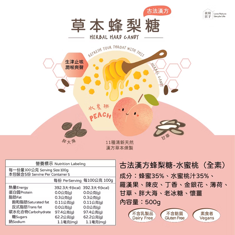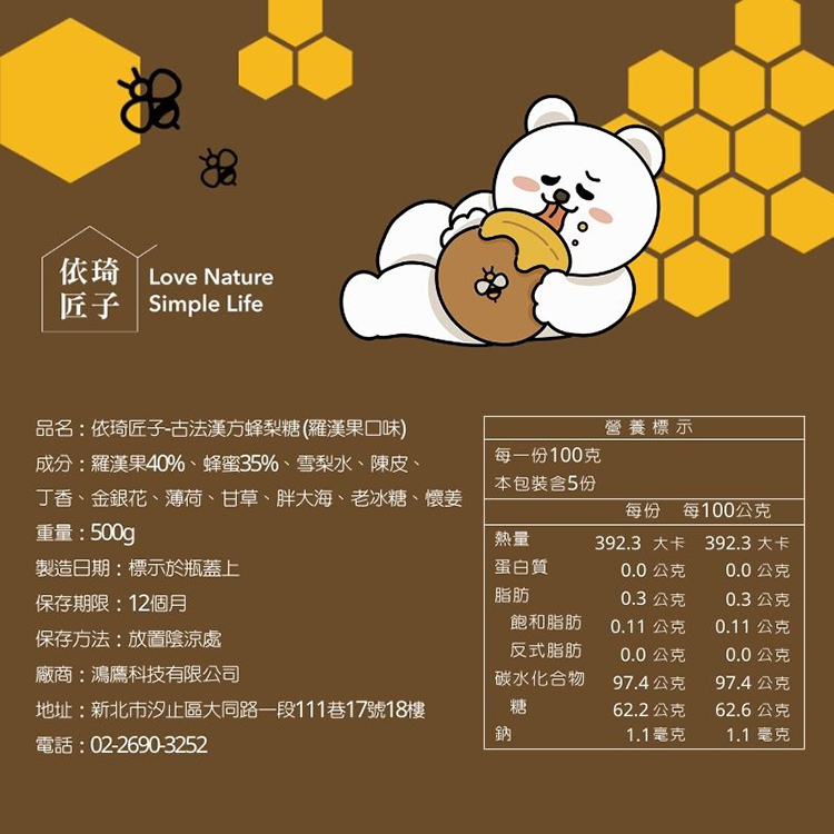 依琦匠子 正宗天然草本漢方蜂梨糖500gx4罐(贈一包120g分享包)